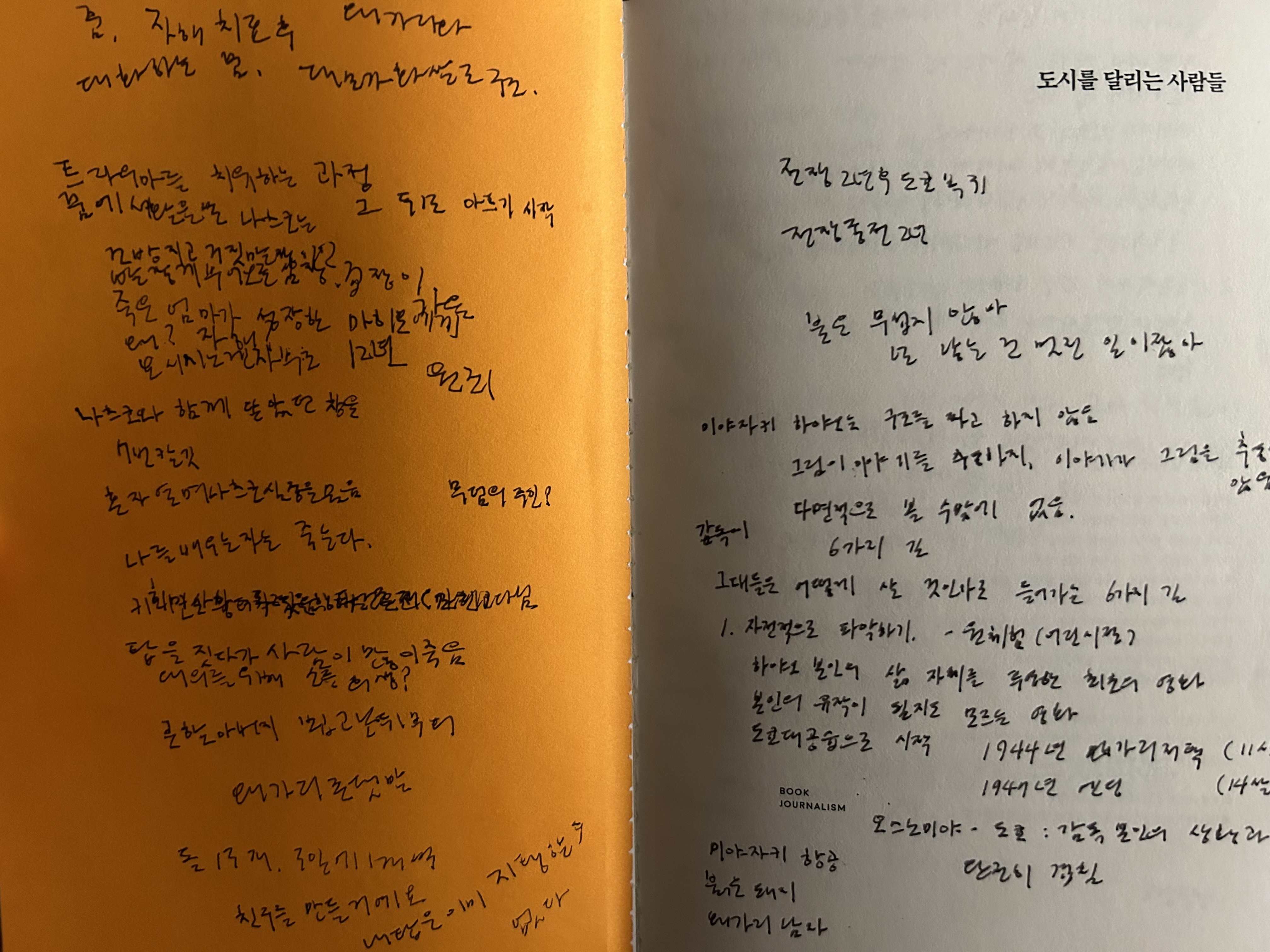 영화가 시작되면 종이와 글자는 정말 하나도 안 보인다. 안 겹치게 쓰려고 손바닥으로 종이를 더듬어가며 썼다. 왼쪽 페이지에 보면 완전히 겹친 두 문장이 있다. 영화를 보며 빈 종이에 내 생각을 손으로 쓰는 경험은 정말 상쾌하고 특별했는데, 마치 대성당의 마지막 장면 같달까...