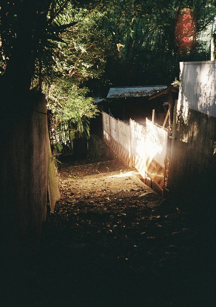 시게모리 미레이 정원 미술관을 보고 싶어 바로 앞까지 갔는데 자전거 댈 곳이 보이지 않아 알짱거리기만 한다. 열린 문 안으로는 인기척도 없고, 머리를 이리저리 굴리다 동쪽으로 300m 정도 떨어진 곳의 거대한 신사 입구 앞에 자전거가 서너 대 놓인 것을 발견했다. 그곳에 자전거를 대고, 내친김에 신사나 보고 올까 싶어 계단을 오르기 시작했다. 풀이 무성하고 길이 꺾여 있어 어디가 끝인지 보이지 않았는데, 서른 계단 쯤 오르니 사위가 몹시 을씨년스러워졌다. 날씨가 흐려 볕이 거의 들지 않는데 어딘가 멀리서 공포스러운 종소리가 들려오고, 철푸덕거리는 새의 날갯짓 소리나 풀을 헤집고 다니는 짐승 소리 같은 것이 반복되어 오싹한 느낌을 받았다. 계단을 계속 오르며, 귀국 후 한국 무당이 나를 보고 무시무시한 악귀가 씌였다고 호통치는 상상을 했는데 막상 오르니 작은 신사가 하나 있어 주변만 둘러보고 바로 내려왔다. 그새 원래 가려던 정원 미술관이 영업을 종료해 문이 굳게 닫혀 있었다.