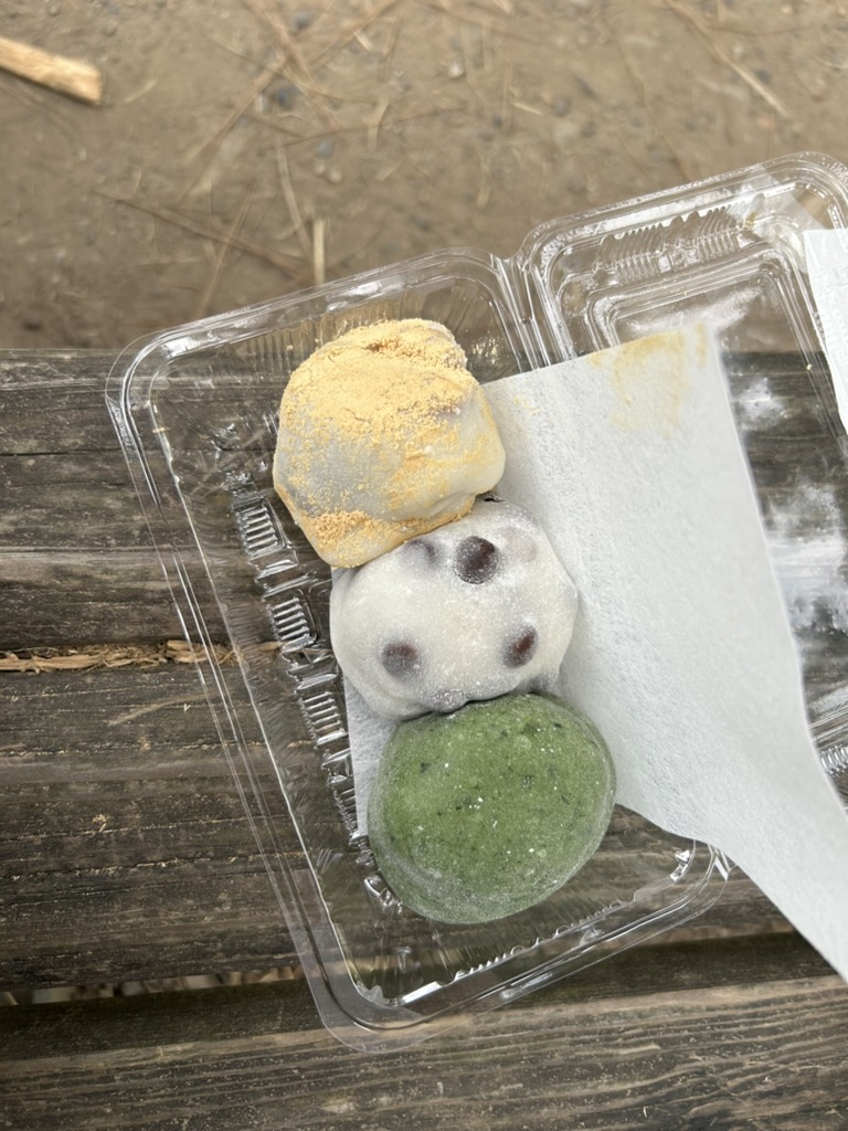나는 마메모찌 하나, 콩가루가 뿌려진 마메모찌 하나, 녹색 마메모찌 하나를 주문했다. 마메모찌는 쉽게 말하면 한국에서 파는 찹쌀떡의 팥앙금 바깥쪽에 찐 통팥을 알알이 박아놓은 것이다. 먹었을 때 크게 독특한 점은 느끼지 못했다. 콩가루 마메모찌에는 통팥이 아니라 찐 밤 조각이 박혀 있어 단 맛이 거의 나질 않는다. 이 동네에서는 주민들이 즐기는 간단한 간식거리가 아닐까.